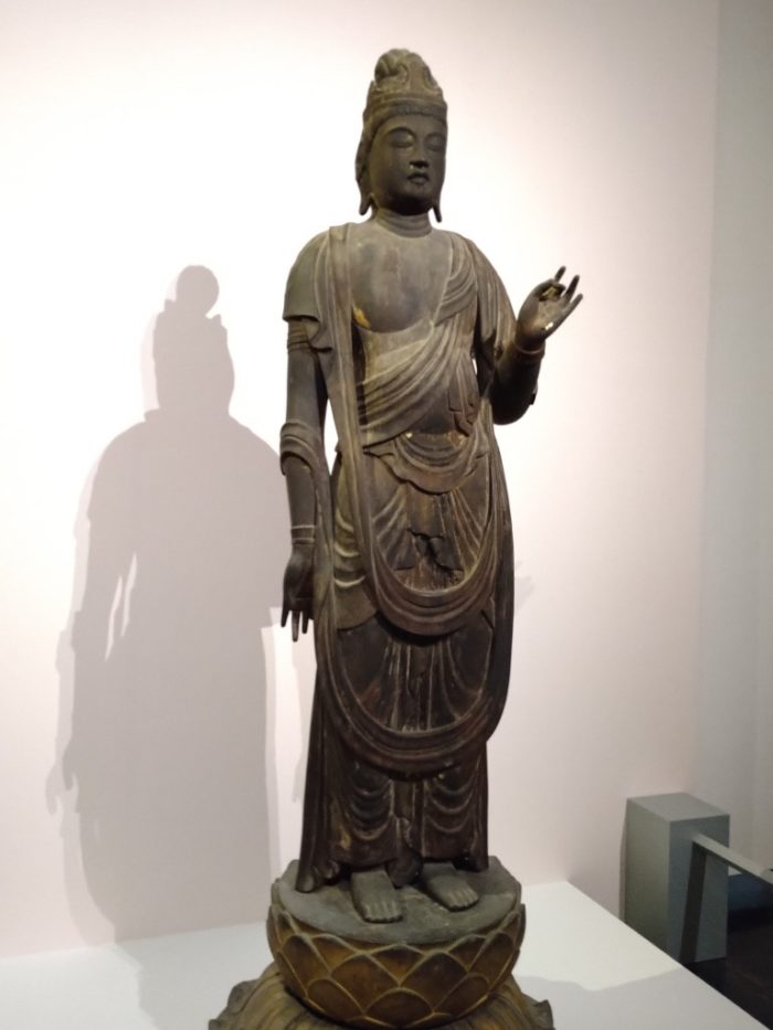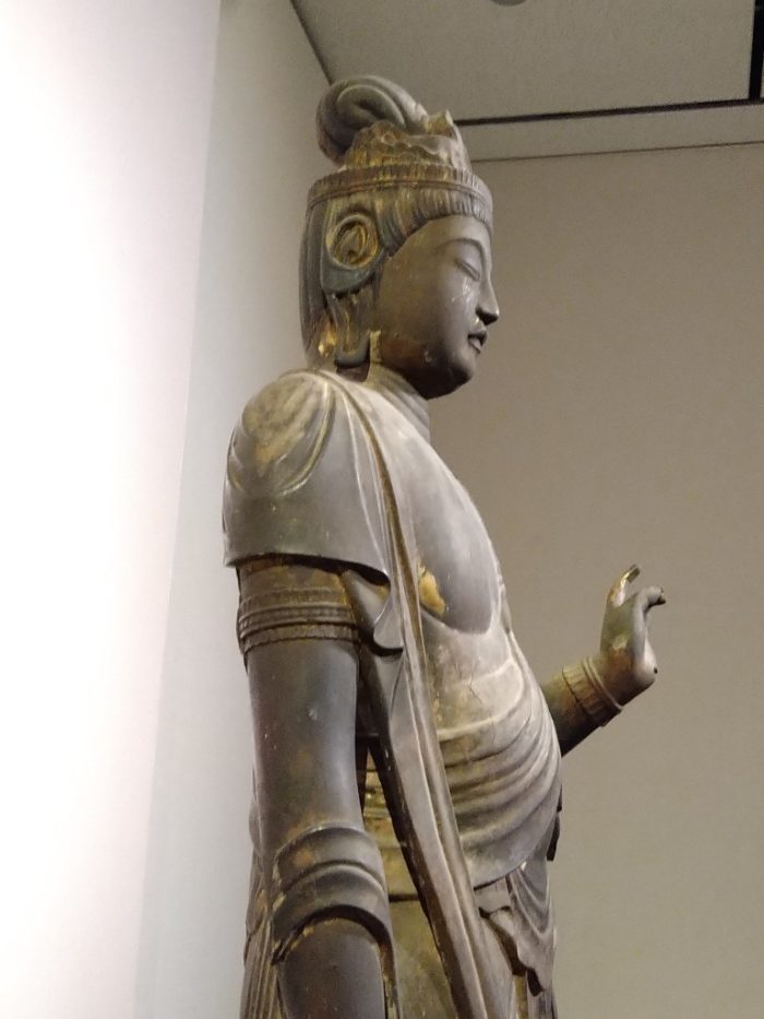 今回、西教寺と博物館の特別の計らいで、展示品の中の聖観音菩薩立像一躯が、撮影可能となっていたので、このお像をご紹介したいと思います。