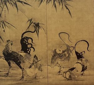 若冲の雄鶏の迫力が凄すぎて圧倒されました。隣にいる雌鶏の優雅で綺麗な事、見惚れてしまう。