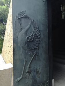 扉には大きな羽を広げて躍る様な鶴がレリーフしてあります。