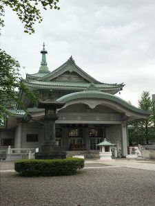 関東大震災の慰霊のために作られました。純日本式の建築ですが木造でなく鉄骨鉄筋コンクリート造りです。唐破風・入母屋式・切妻式と日本の伝統的な様式でできています。三重塔もあります。中に入るとキリスト教会を思わせるような空間が広がっています。しかし祭壇の厨子は神式です。怪獣もハートもあります。私は伊東忠太の思いがいろんなものが押し込まれているような気がしました