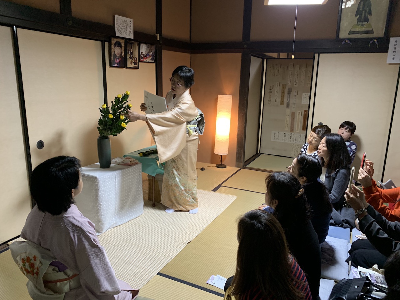 今回は「いけ花様式の変遷」を実際のお花をご覧いただきながら、井上先生にご解説をして頂きました。