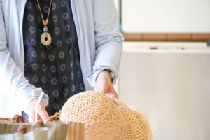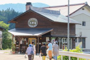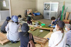 今回のフィールドワークは、熱中症対策のため、室内で過ごす時間も取り入れました。大芦区長の五十嵐喜久男さん(工房風雲)には、拠点とした大芦保健福祉館で「大芦の手仕事展」を開催していただきました。また、地域の文化・情報発信地で各種勉強会も開催する「ファーマーズカフェ大芦家」もコースに加えさせていただきました。4つの小グループの誘導には、昭和村役場 観光交流係の山内翔吾さん、友人でイラストレーターの涌井加奈恵さんに、また、からむし工芸博物館での解説には地域おこし協力隊の松尾悠亮さんにご協力いただきました。ありがとうございました。