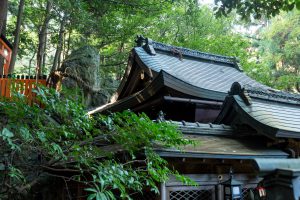 この逸話をそのまま由緒にひくのが、稲荷山山上の長者社神蹟(御劔社)です。ここには劔石(つるぎいし)と呼ばれる御神体が社殿の後ろにそびえ立っています。鍛冶屋、鋳物師、たたら製鉄などを生業とする人々と古くから密接な関係を持っているのも稲荷信仰の一面です。