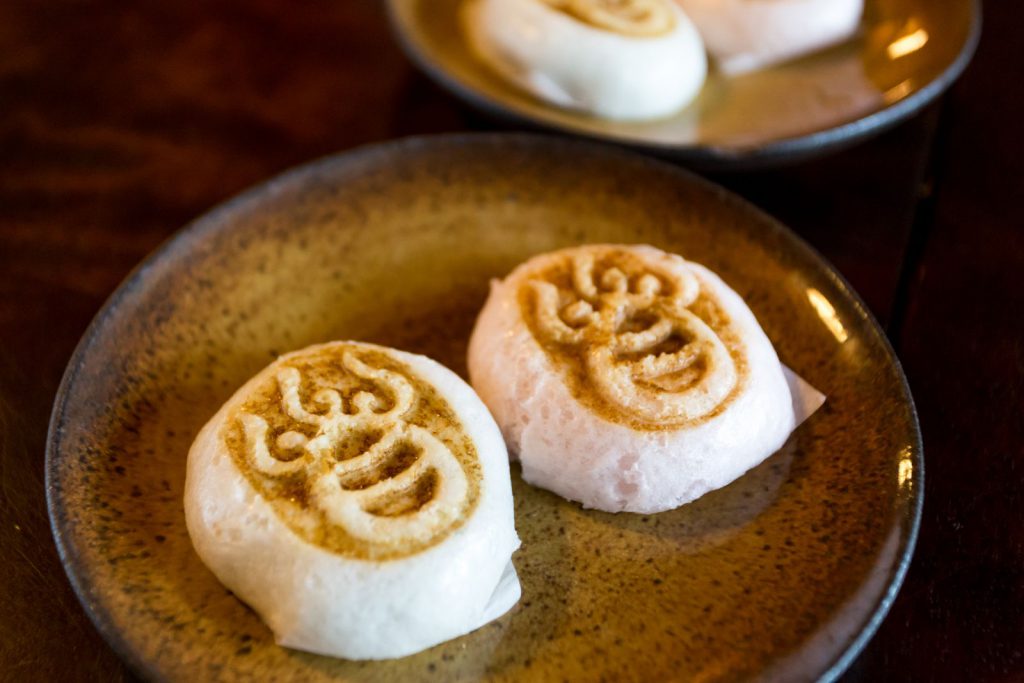 お火焚饅頭は、お茶席で使われるようなヤマノイモを用いた薯蕷(じょうよ)饅頭とは違う、より庶民的な小麦粉で皮を作る饅頭なのですが、「ぱさぱさした食感にならないように、タピオカでんぷんの雪餅粉を加えてみたのです。」と新しい工夫をされていることをお話くださいました。加えて「うちは初代からこの焼き印にこだわってきたのです。」と。