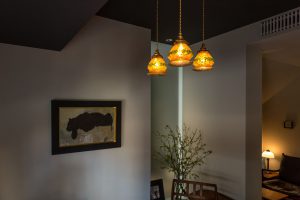 そして、四条通りの手前で、東に抜けるやや細い道を右折し、次の角を左折した奥まった通りにあるのが、「ZEN CAFE」です。ZEN CAFEは、祇園の老舗菓子店「鍵善良房」が出されているお店で、和菓子とコーヒーや日本茶をゆっくりいただくことができる京都ならではのカフェと言えます。照明や机などにはアンティークなどが用いられ、椅子は迎山直樹氏の手になるもので、じつに心地いい空間が用意されているのも魅力です。