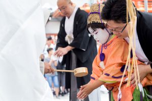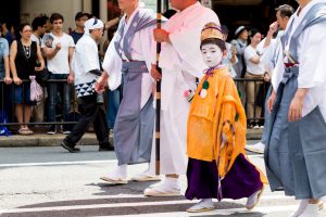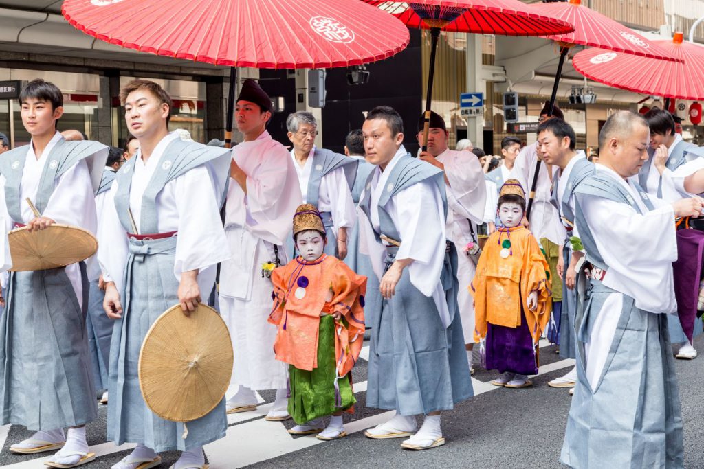今回は、この綾傘鉾のお稚児さんに関わる祭事を中心にお伝えしたいと思います。