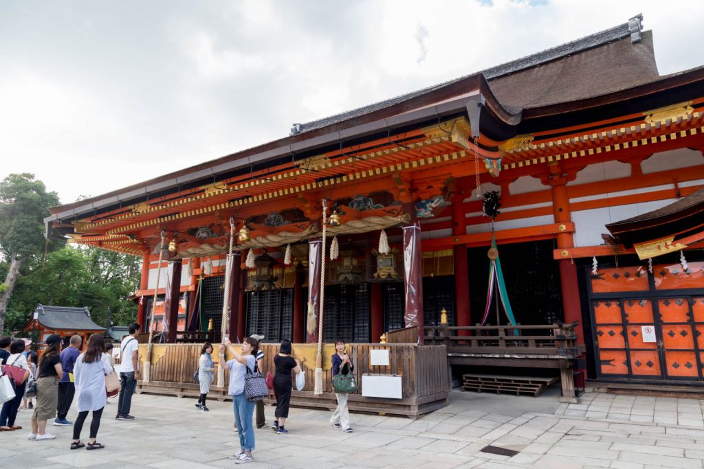 慶応4年(1868)に八坂神社と改称され、神仏習合を廃して祭神は素戔嗚尊となりました。祭りの期間に山鉾町で授与される粽(ちまき)には、いずれも「蘇民将来子孫也」という護符がつけられていることはよく知られています。八坂神社の氏子はみな「蘇民将来子孫」を名乗ることで、疫病を被らないというご利益をうけることになるのです。