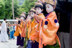 それでも疲れた顔ひとつせず、にこやかに子供らしく微笑んだり、また背筋を伸ばして厳かに歩むお稚児さんたちには、本当に感心してしまいます。神の遣いのお役をみな精一杯果たしておられます。