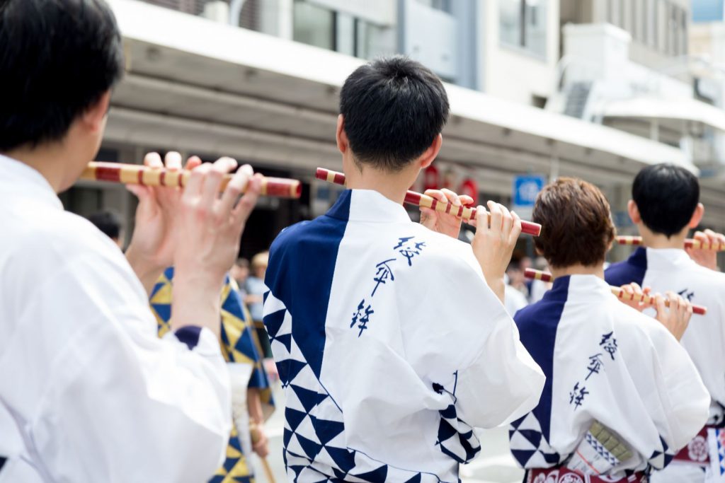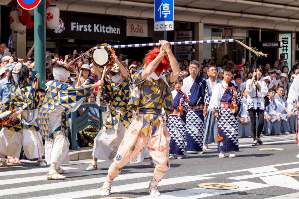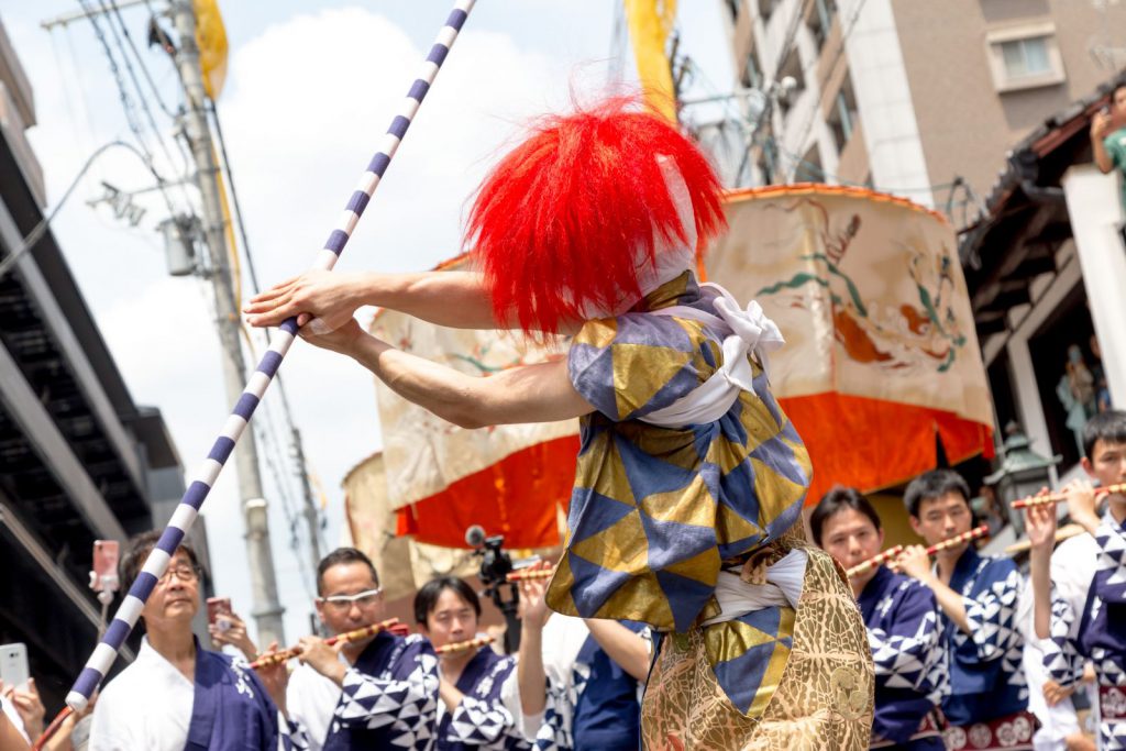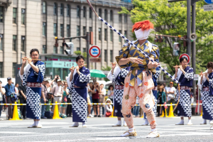 また四条河原町の交差点では、八坂神社の方へ向けて棒振り囃子が奉納されます。
