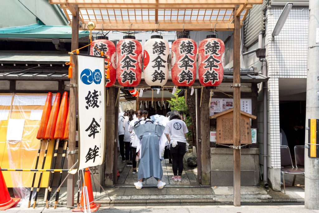 7月1日の吉符入からすでに祇園祭の諸行事は始まっています。2日の籤とり式も済み、綾傘鉾は傘一番を引き、全体で7番目の巡行順が決まりました。