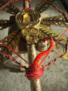 この一乗寺八大神社の剣鉾は、剣鉾保存会によって技術伝承が行われており、京都市の登録無形文化財にもなっています。4月末からは氏子の方々が毎日練習に励まれるそうです。昨今は、その技術保存や後継者育成が大きな課題となっており、「子ども用剣鉾」が京都市文化財保護課より贈られており、4月29日(日・祝)には、子供たちの練習も行われるようです。
