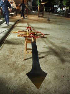 ※「剣鉾」練習の開始は午後8時くらいから。終了は午後10時前後だそうですので、見学は30分〜1時間程度を予定しています。